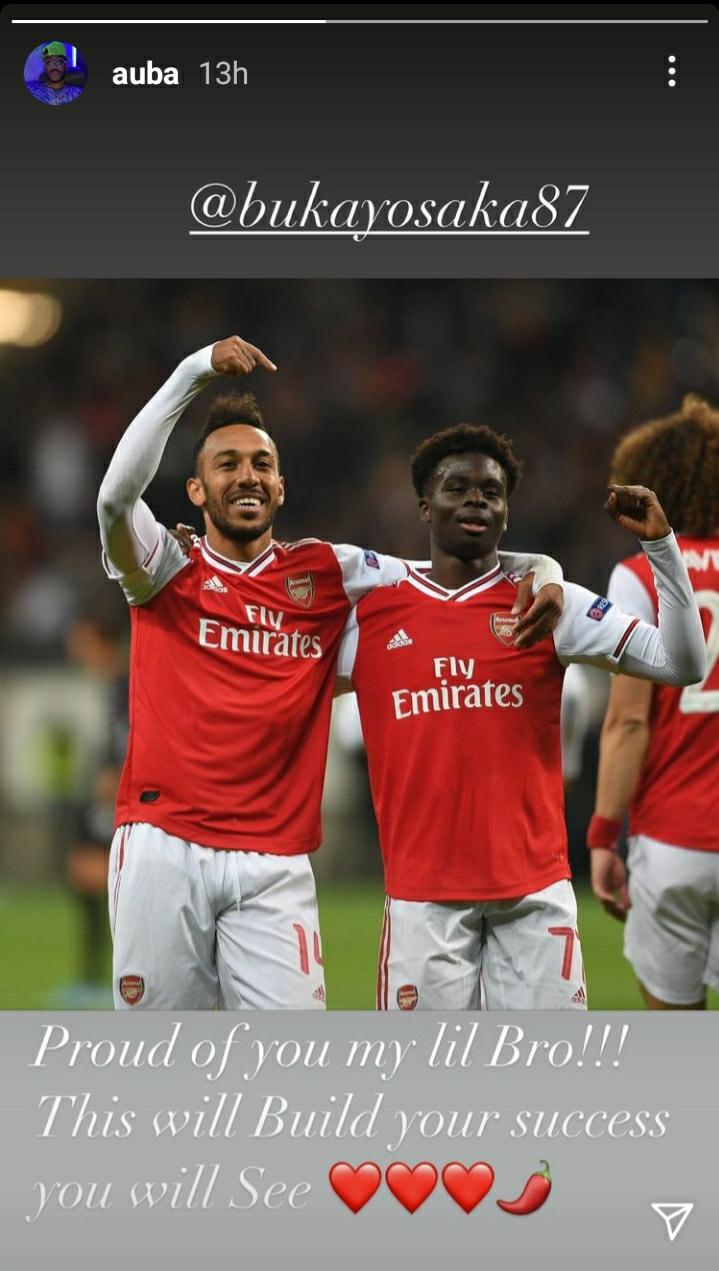 „Mândru de fratele meu mai mic! Asta îți va construi succes în viitor, vei vedea!”, a fost mesajul lui Aubameyang pentru Saka.