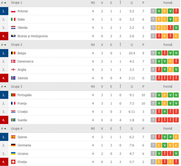 - Polonia – Bosnia și Herțegovina 3-0 (Lewandowski 40′, 52′, Linetty 45+1′)