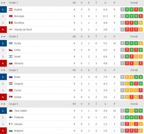 - Turcia – Serbia 2-2 (Calhanoglu 57′, Tufan 76′ / Milinkovic-Savic 22′, Mitrovic 49′)